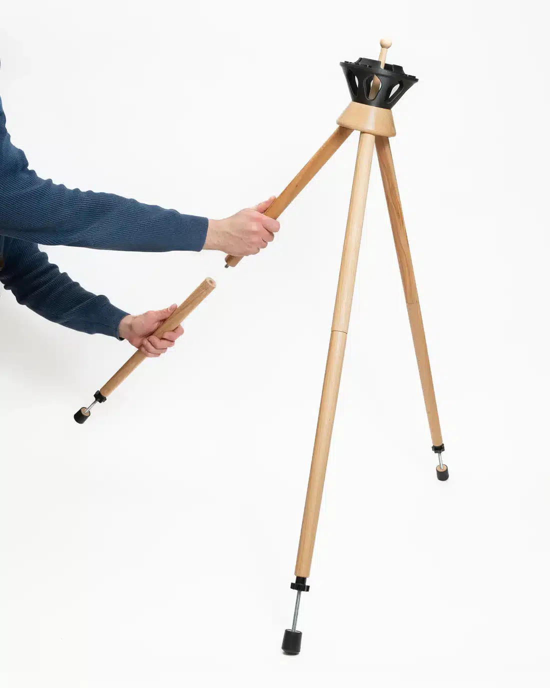 The Atlas Handpan Stand is a complete, adjustable tripod that allows you to play sitting down (without extensions) or standing up.