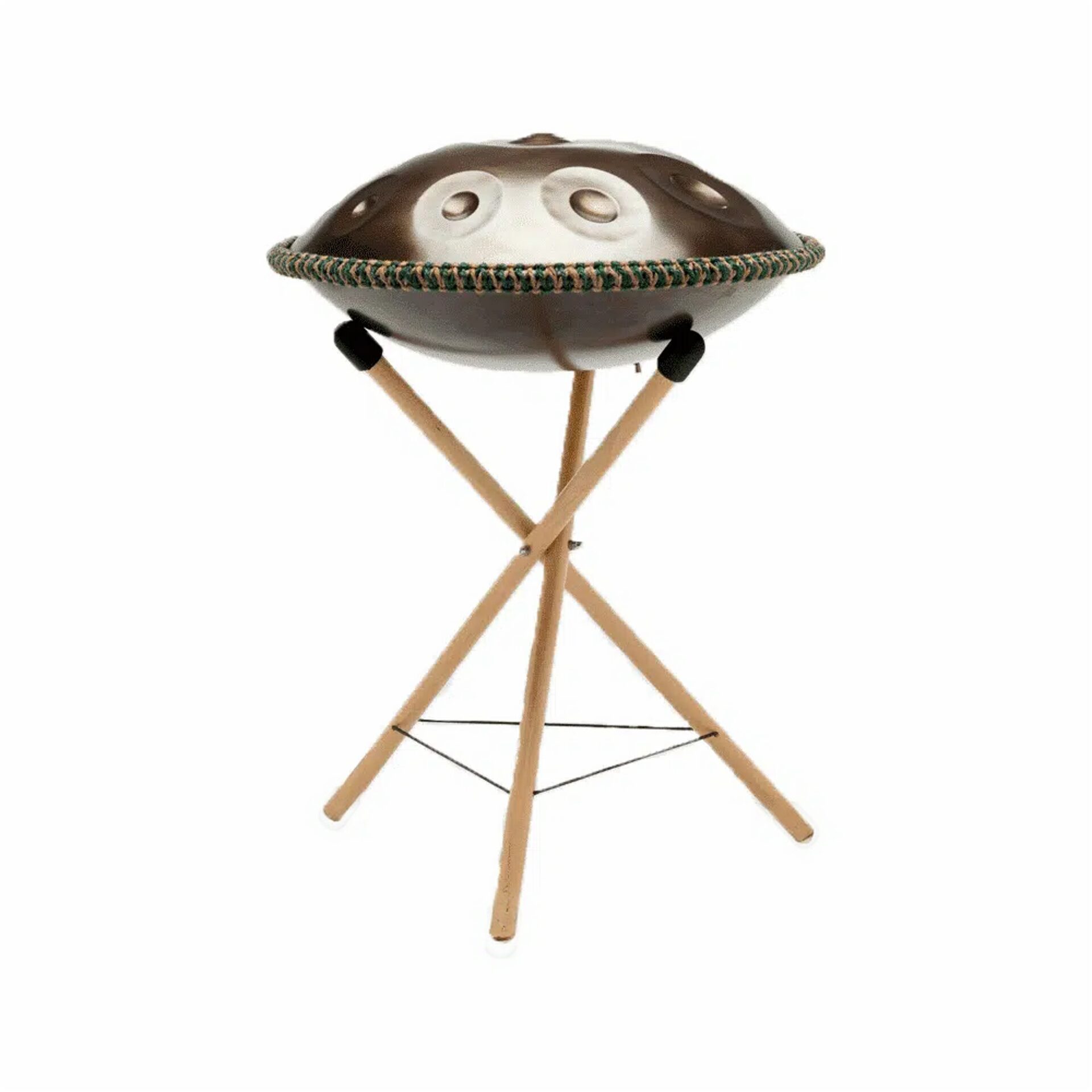 The perfect stand to place your handpan on. Do you prefer not to play with the instrument on your lap? Then this stand is ideal to use. The rubber caps prevent the instrument from shifting easily and minimizes muffling of the sound. Handy and easy to fold and take with you. Also nice as a decoration in the house for when not playing. Good to use for hand pans with one to five bottom notes. Comes with carrying case.