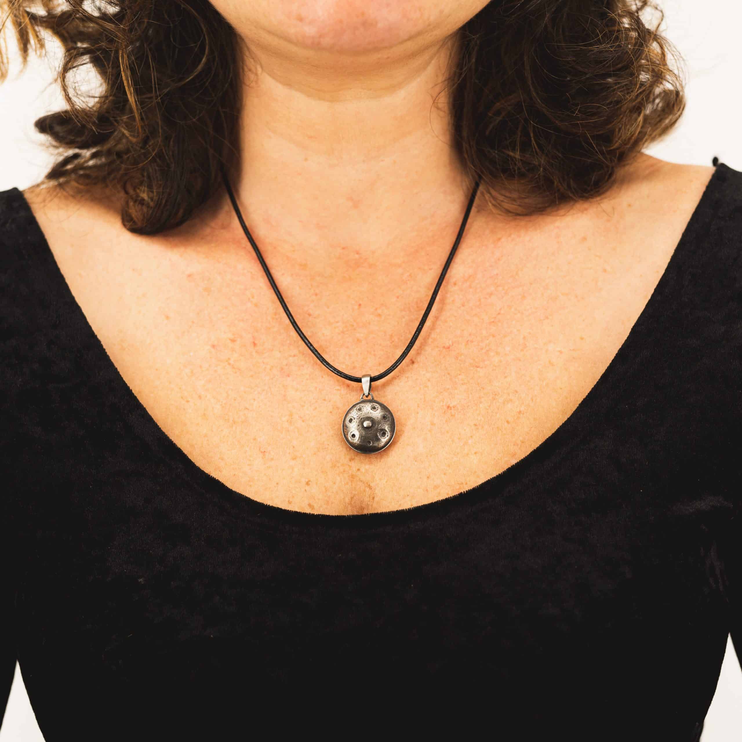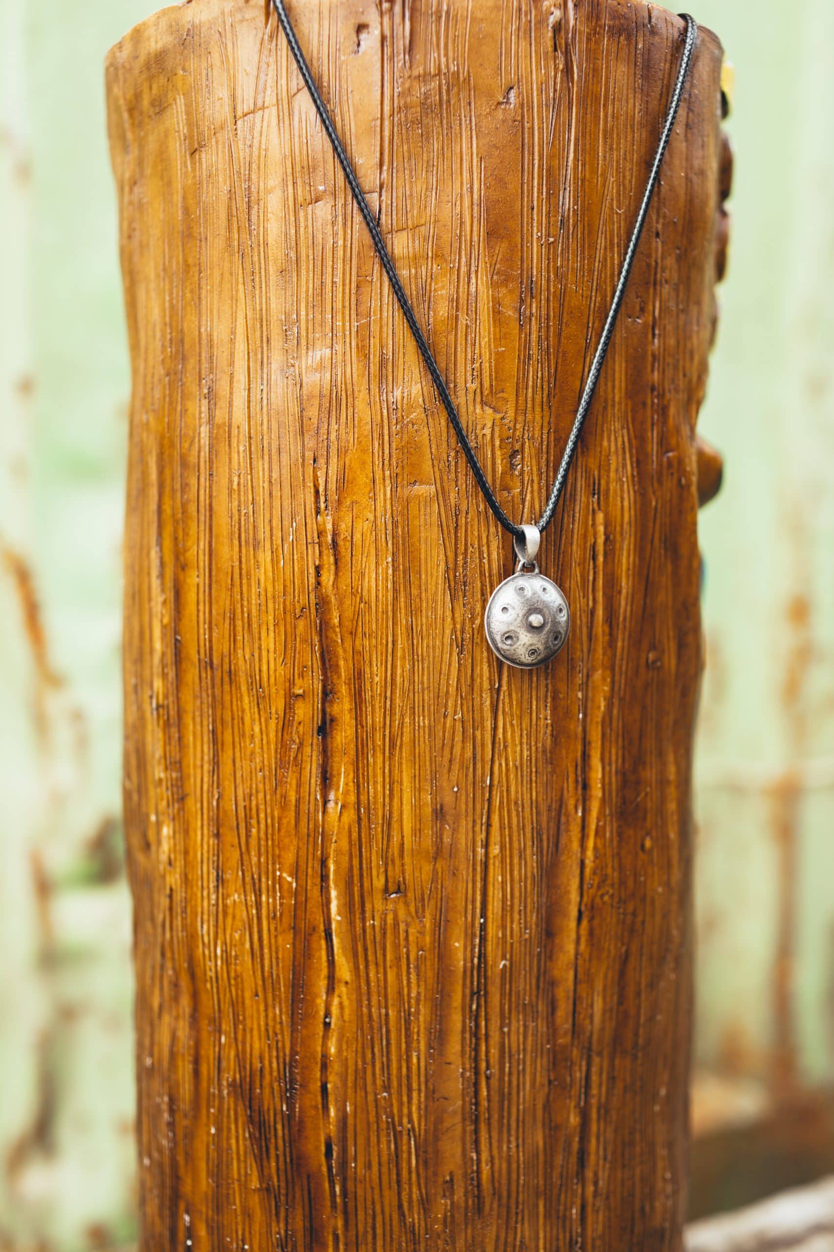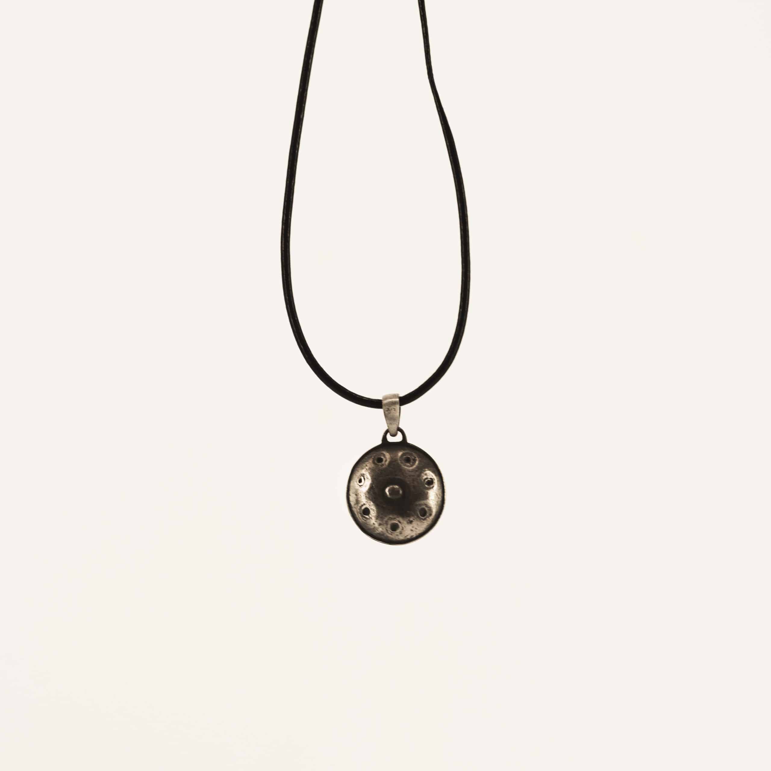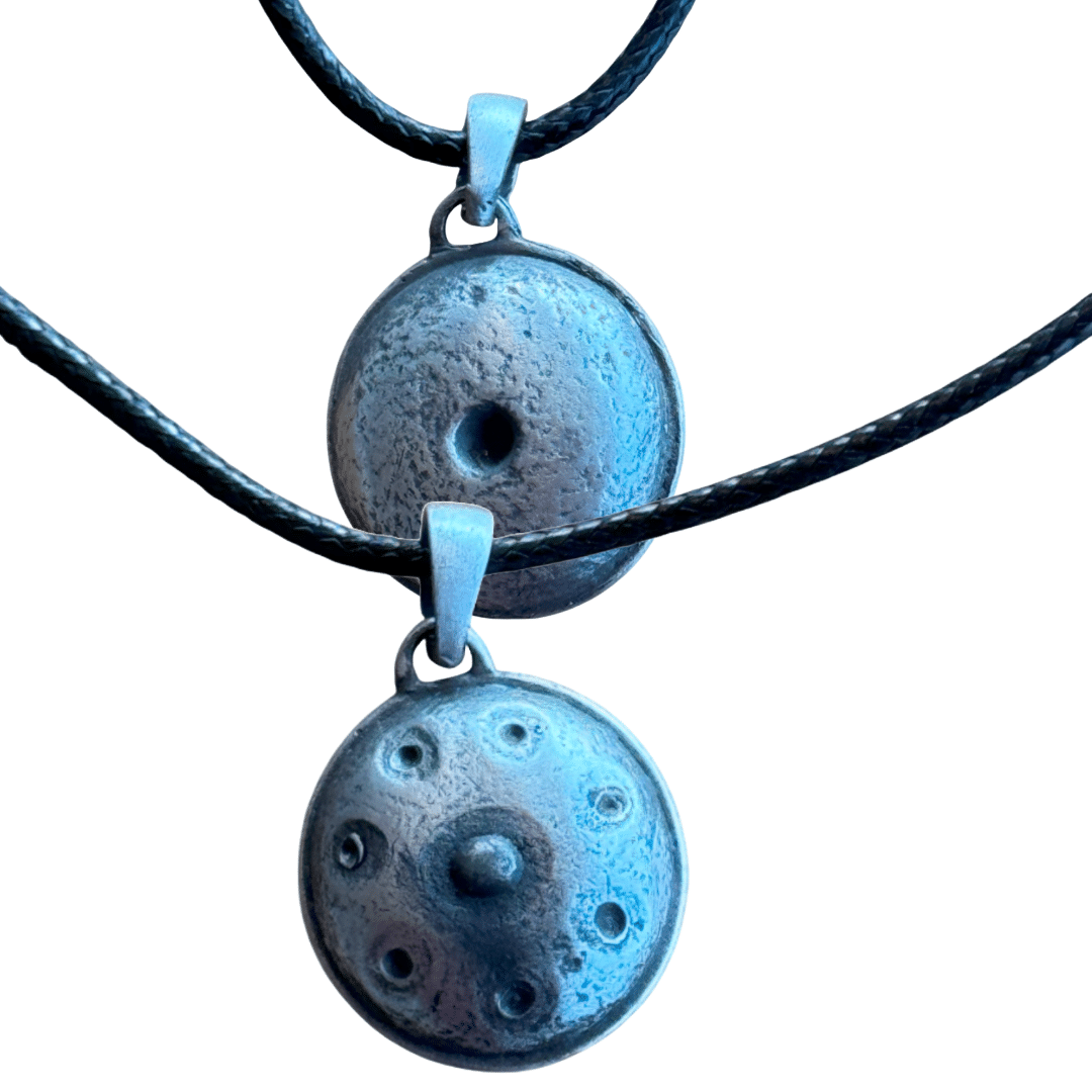 Beautiful precious metal necklace. Lovely weight, hangs perfectly around the neck. Modest size and at the same time a real eye catcher. Can't miss around the neck of a handpan player!